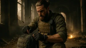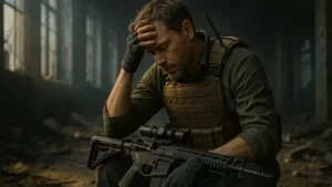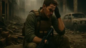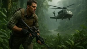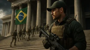 Enquanto tropas estrangeiras colapsam sem apoio aéreo, o soldado brasileiro segue em frente com um cantil, uma faca e pura