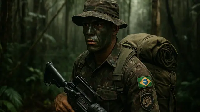 Nada de campo de treinamento simulado. O aluno vive, sobrevive e combate na selva real, com tudo que isso significa: calor de 40°C, umidade sufocante, cobras, onças, e rios cheios de surpresas. - Exigência física e mental extrema 🧠