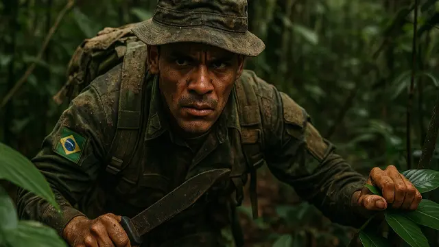 Enquanto tropas estrangeiras colapsam sem apoio aéreo, o soldado brasileiro segue em frente com um cantil, uma faca e pura vontade de não morrer.